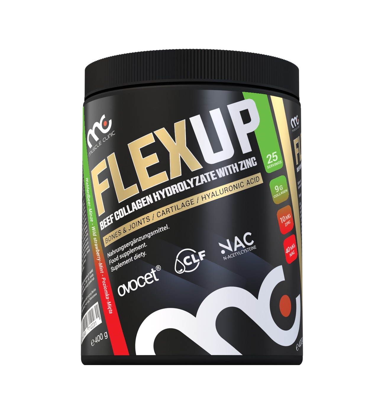 Collagen hydrolyzate is the main nutrient in FlexUp, which is highly absorbable. Its presence is a response to the growing demand of customers – athletes, people who train regularly, preparing for competitions, active and working. Collagen supplementation supports bone regeneration, increases joint mobility, protects joints and cartilage, and has a positive effect on the flexibility of tendons.