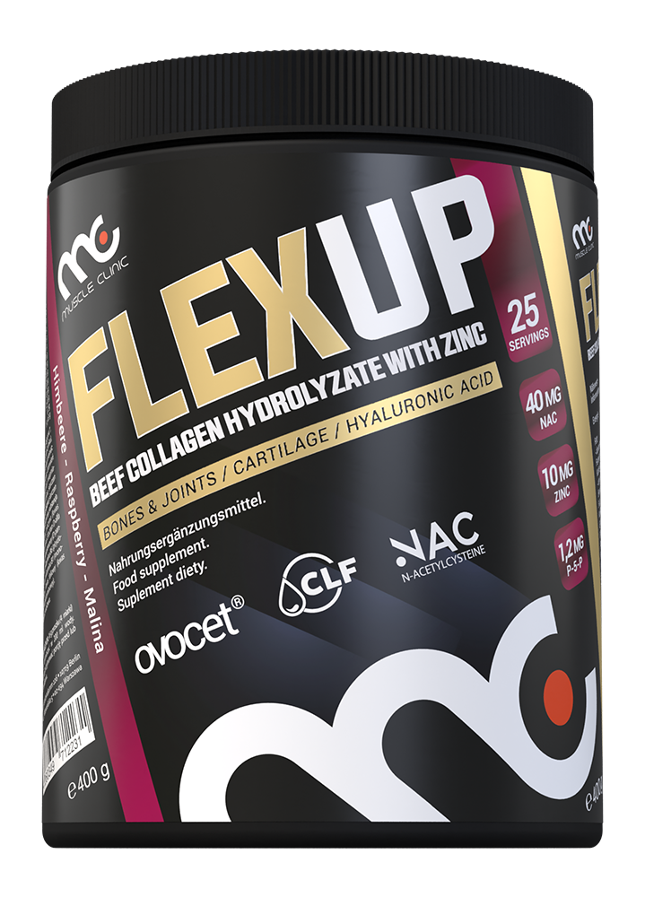 FlexUp is a dietary supplement with bovine collagen hydrolyzate, vitamins and minerals . Collagen is the most important protein in the body. Supplemented together with other ingredients supporting tissue regeneration, it protects joints and tendons – anatomical elements particularly vulnerable to injuries and overloads in physically active people.