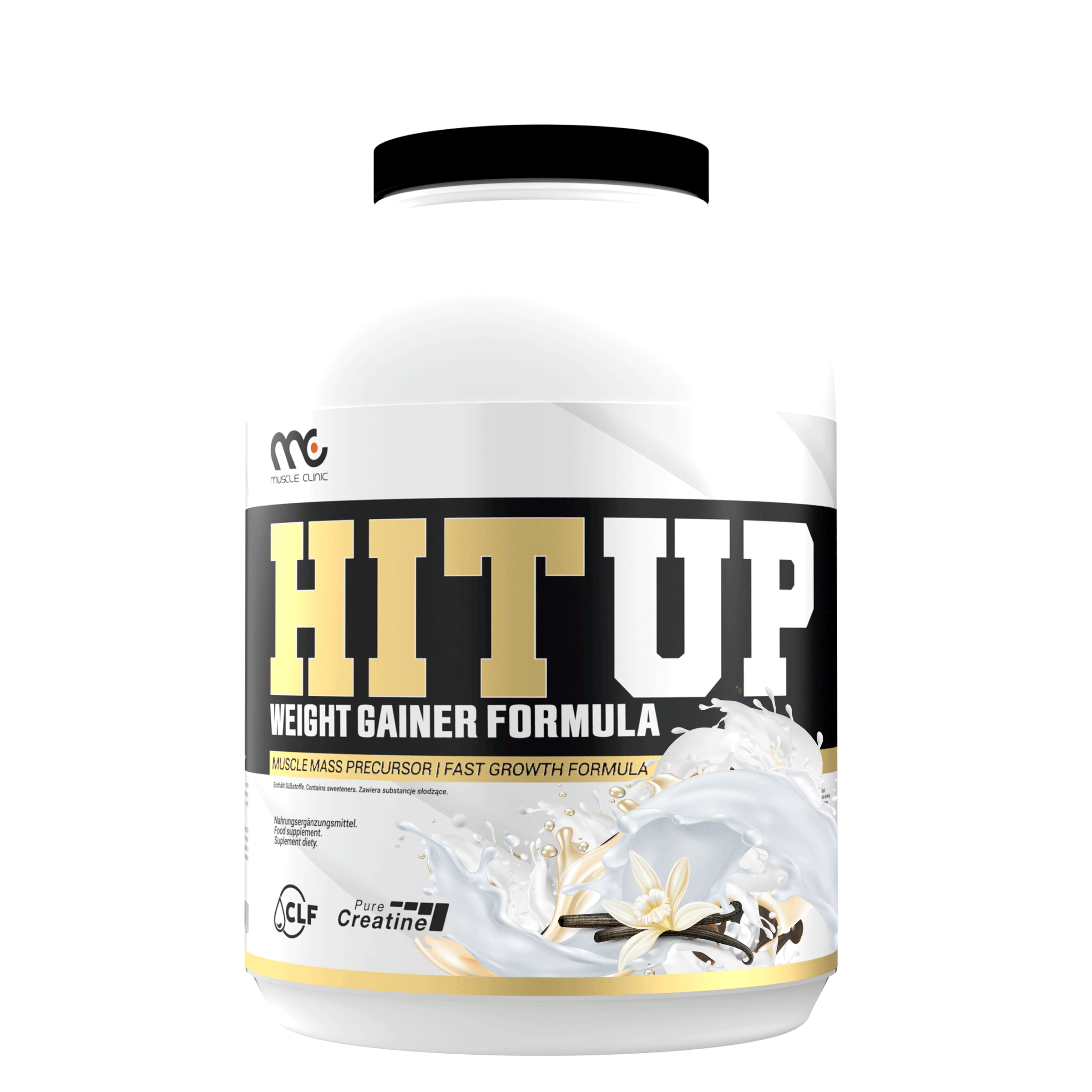 In order to effectively build muscle mass, it is necessary for the body to be in a caloric surplus , i.e. consume more calories than it burns. A gainer supplement will be helpful in achieving this surplus, because it provides a large amount of calories in a relatively small volume. Muscle Clinic HitUp Gainer contains high-quality whey protein , which additionally supports building muscle mass.