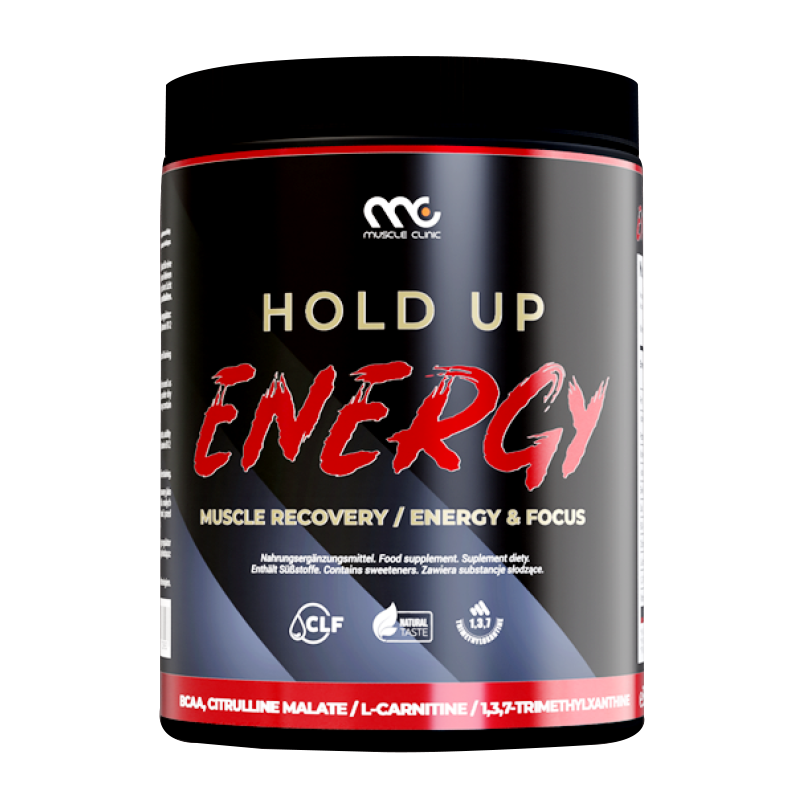 Muscle Clinic HoldUp Energy is a comprehensive pre-workout supplement containing BCAA amino acids in a 2: 1: 1 ratio, l-citrulline, l-carnitine tartrate and caffeine in the form of 1,3,7-trimethylxanthine. It increases muscle mass, improves physical performance, provides additional energy before training and supports post-workout regeneration.