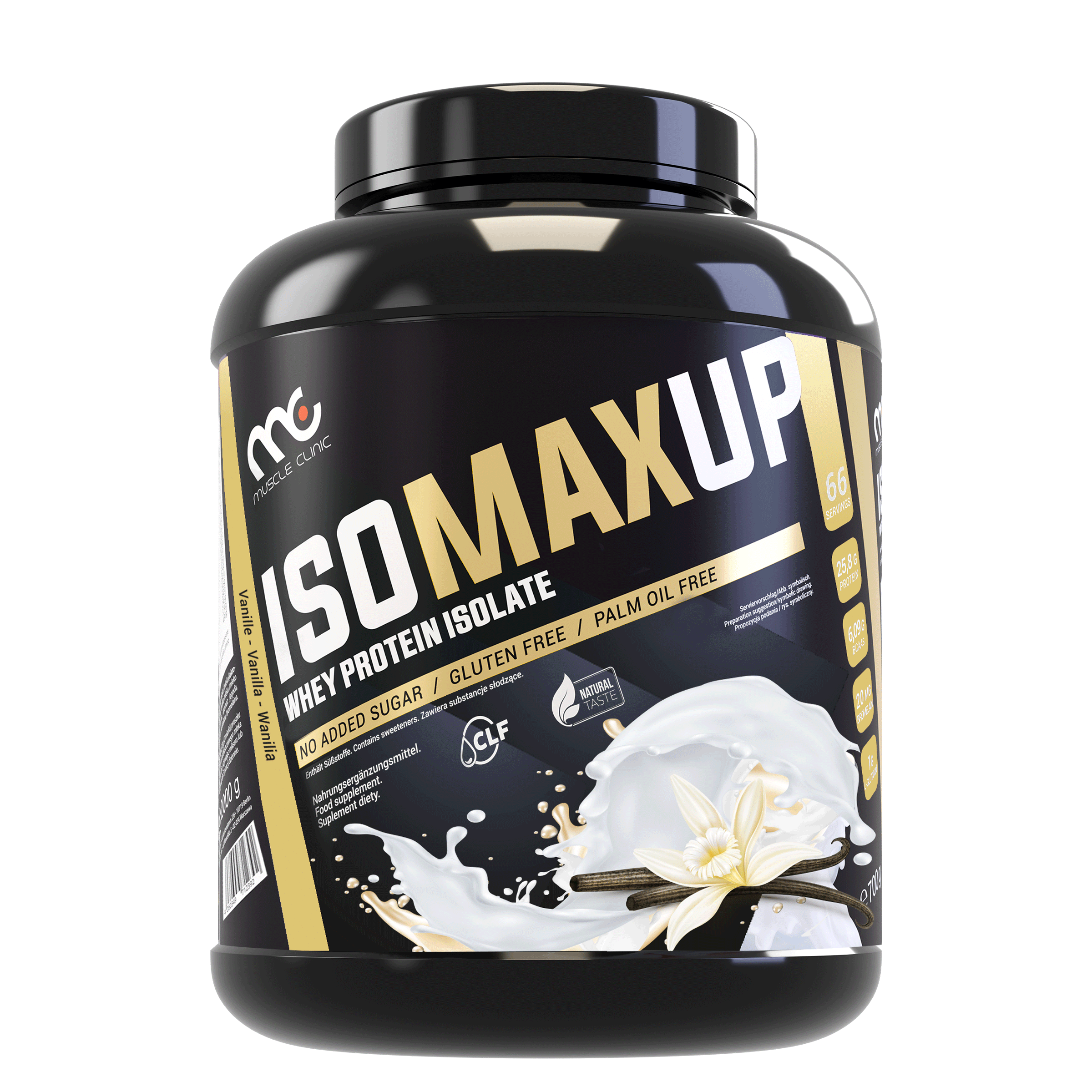 Muscle Clinic IsoMaxUp is a pure, natural whey protein isolate with high bioavailability and short absorption period, created to support the growth of lean muscle mass in physically active people. It contains a full complex of amino acids (including 8 essential amino acids), as well as the addition of bromelain and glutamine .