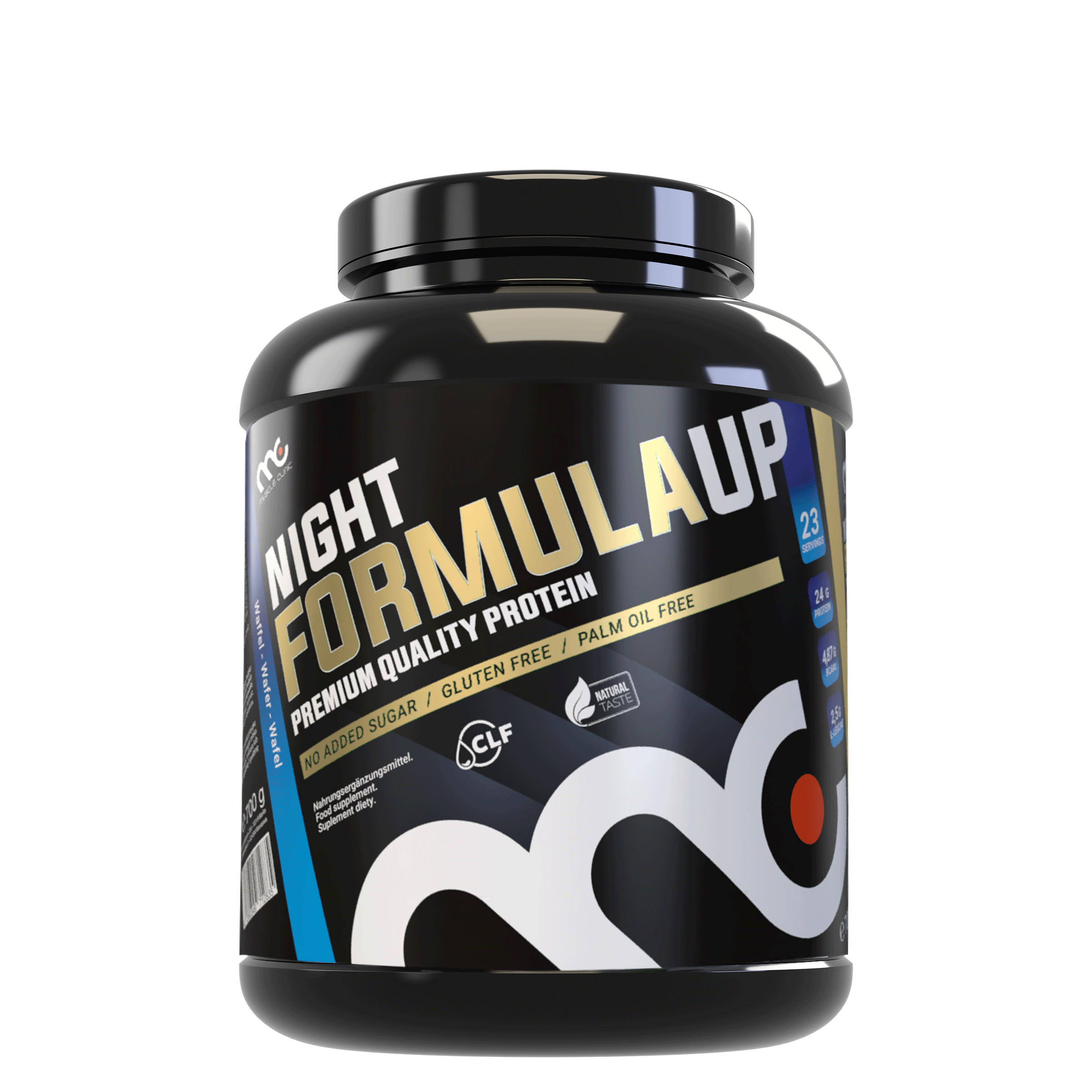 Muscle Clinic NightFormulaUp is a special protein formula designed to provide muscle tissue with high-quality protein throughout the night.
